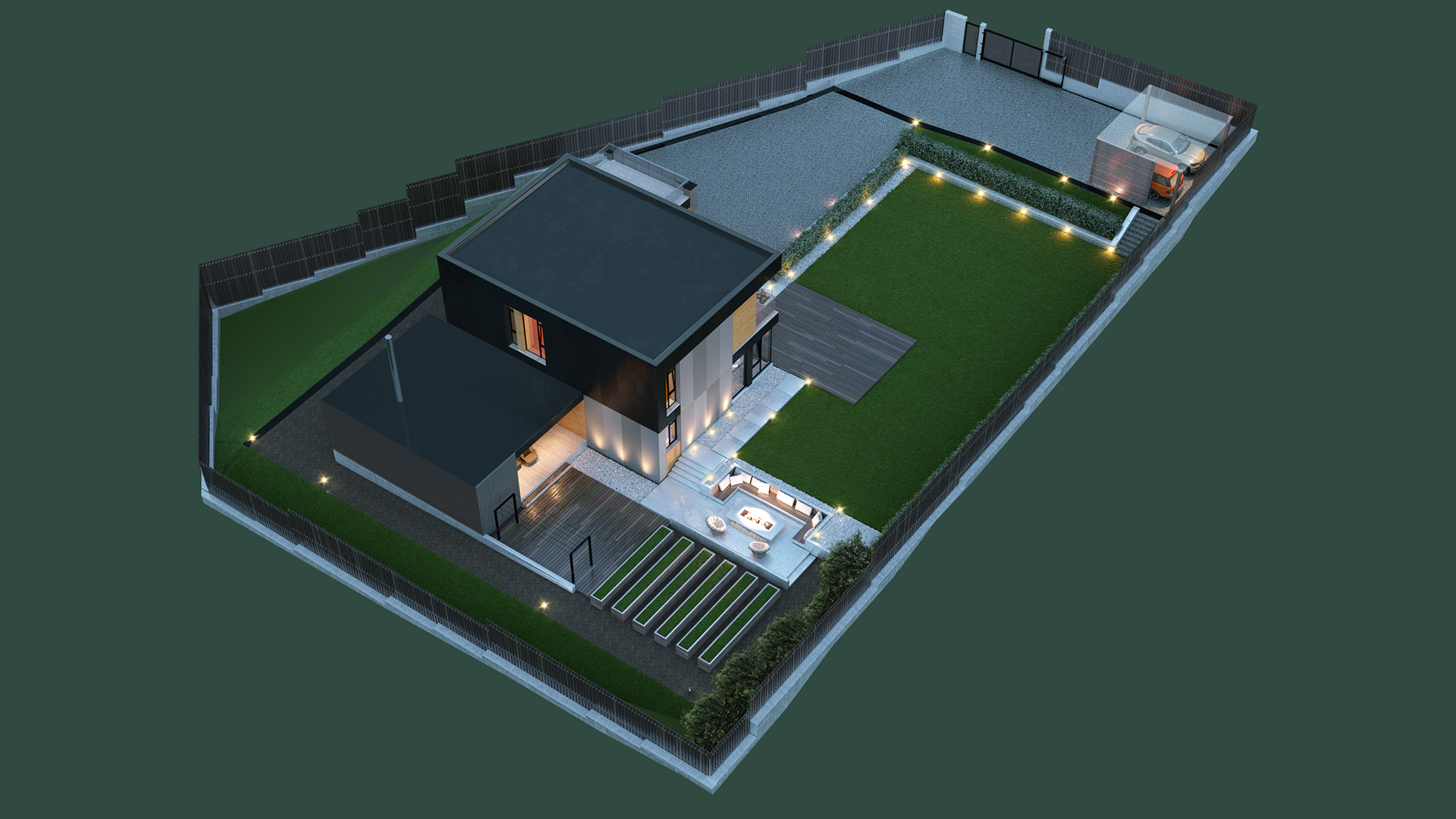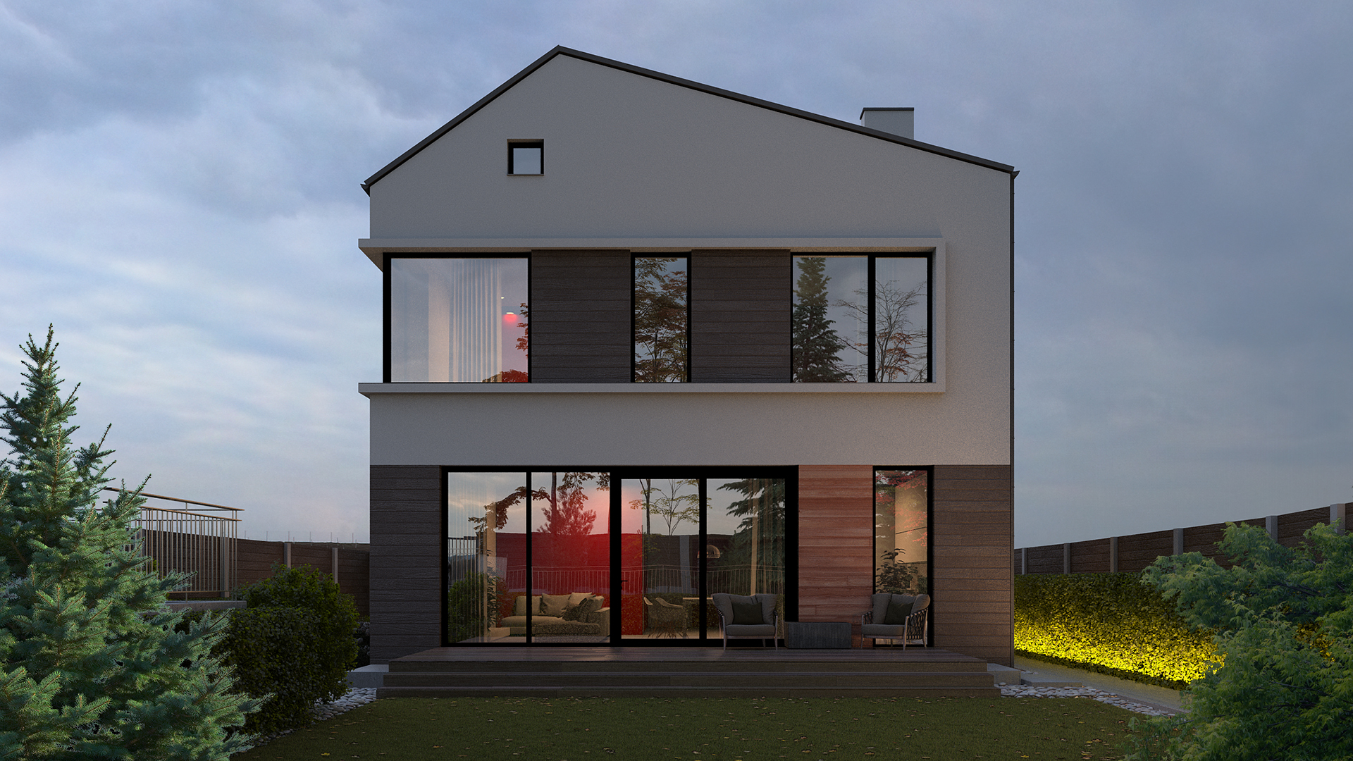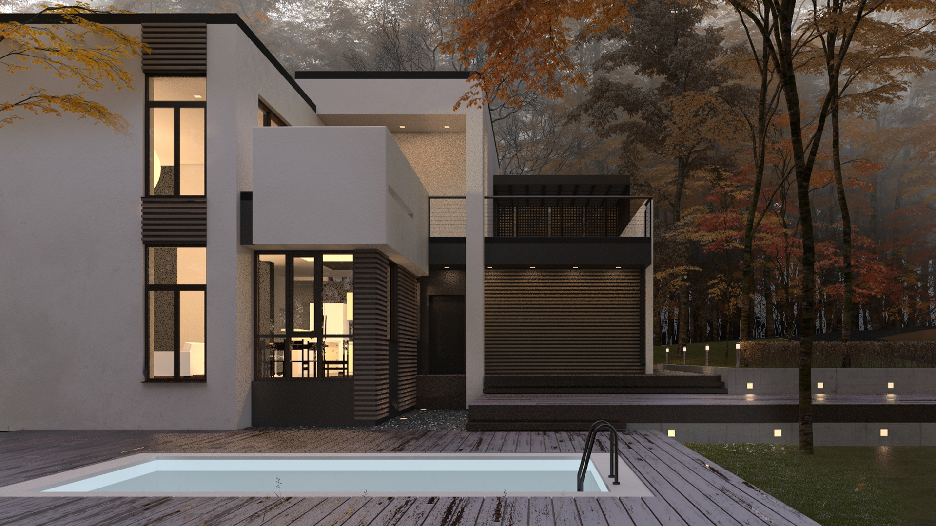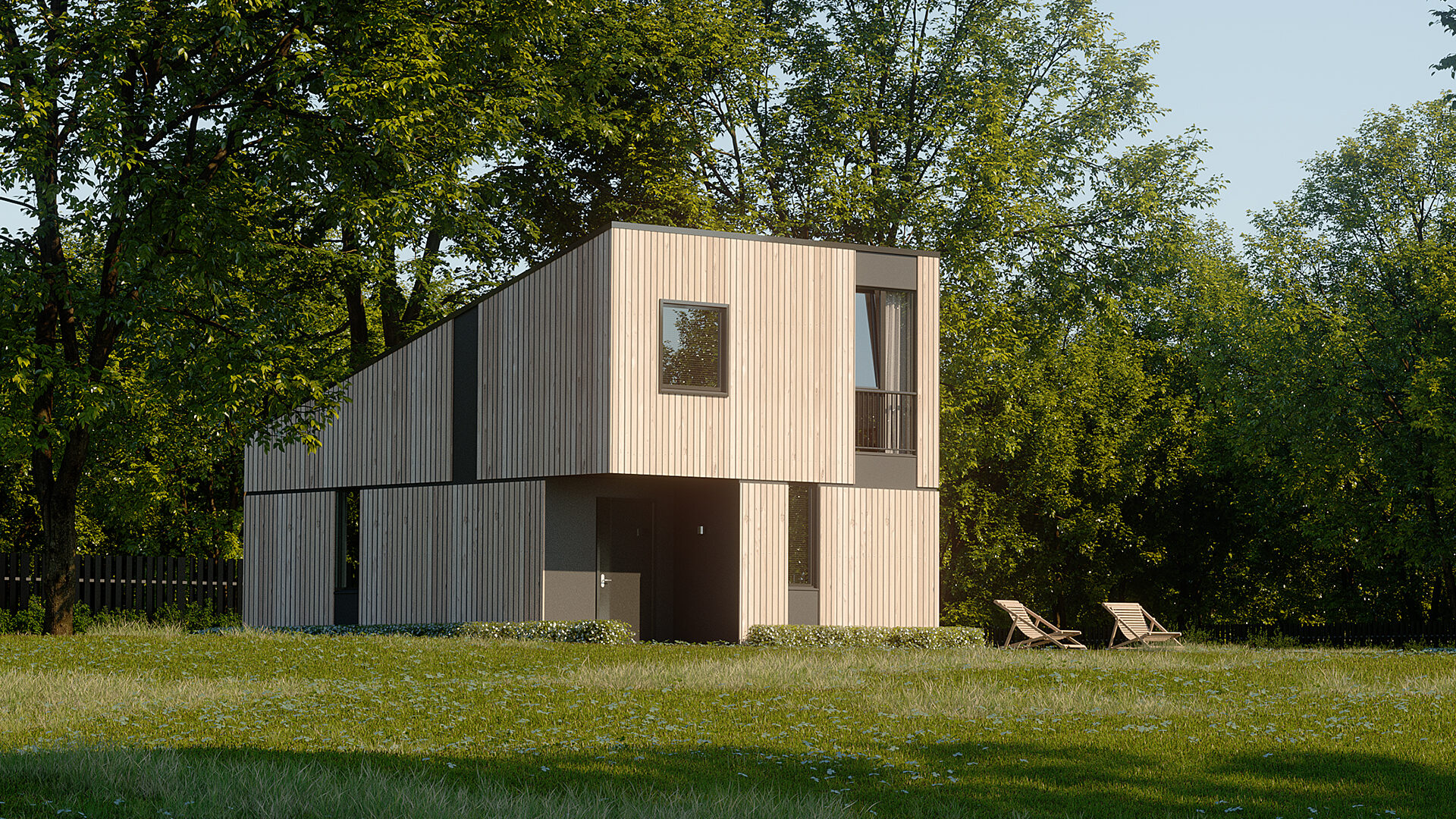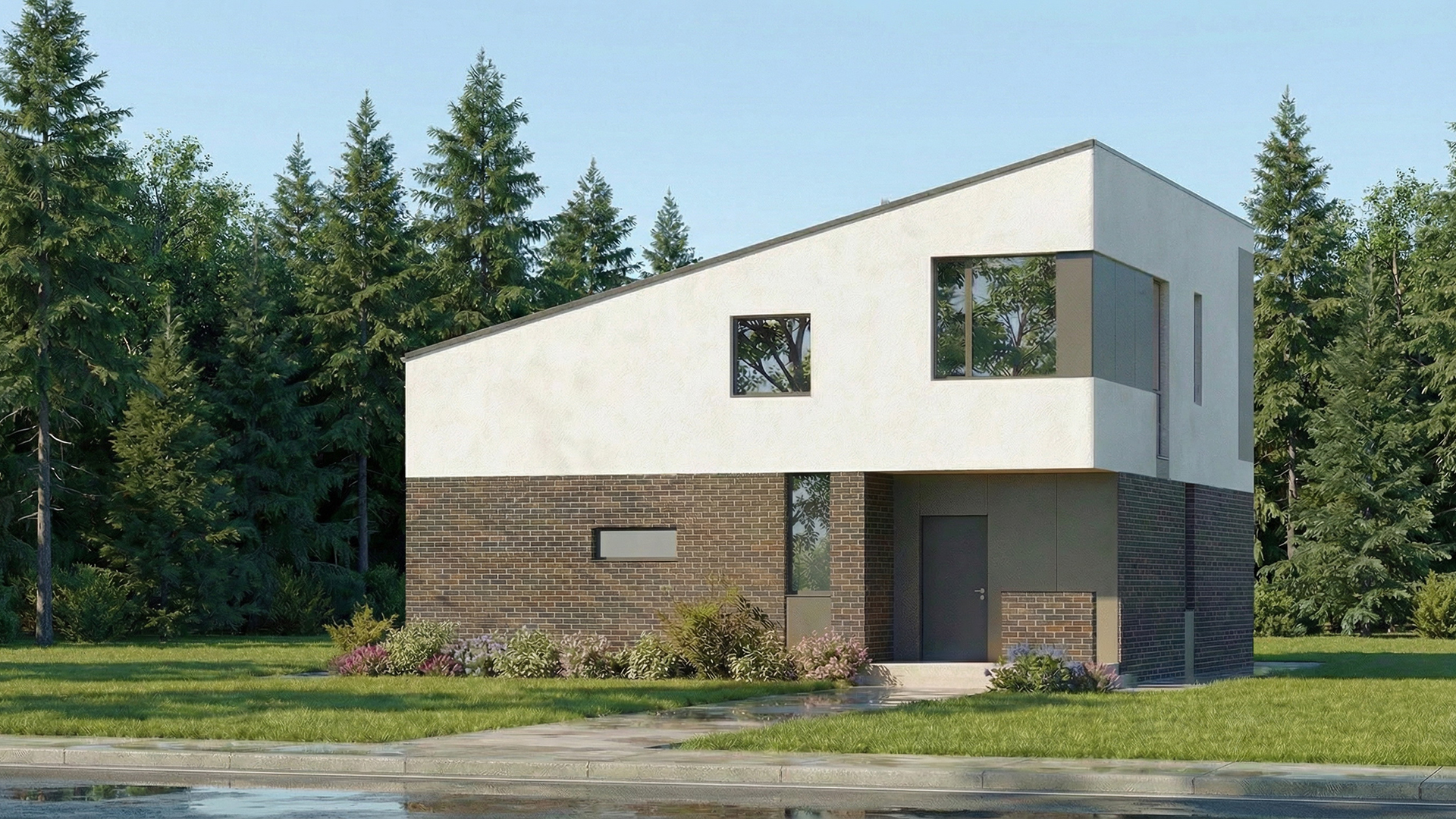 Основной идеей, легшей в основу объемно-планировочного решения, стало наличие у каждой квартиры открытой террасы, что закономерно привело к каскадному смещению этажей, для выразительности силуэта фасад разделен по диагонали на два типа террасирования. Дополнительным вызовом стала необходимость поэтажной проработки планировок квартир с сохранением вертикальности инженерных коммуникаций, мокрых зон и лестнично-лифтовых узлов. архитектурная композиция представляет собой белый объем жилых этажей, парящий над объемом массивного стилобата-паркинга, который также в свою очередь оторван от земли. первый этаж — нежилой, вмещает парадное фойе, въезды в паркинг и коммерческие площади.