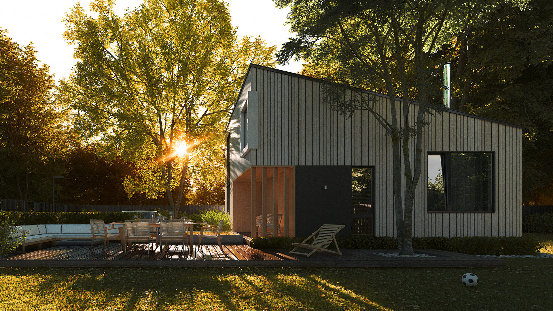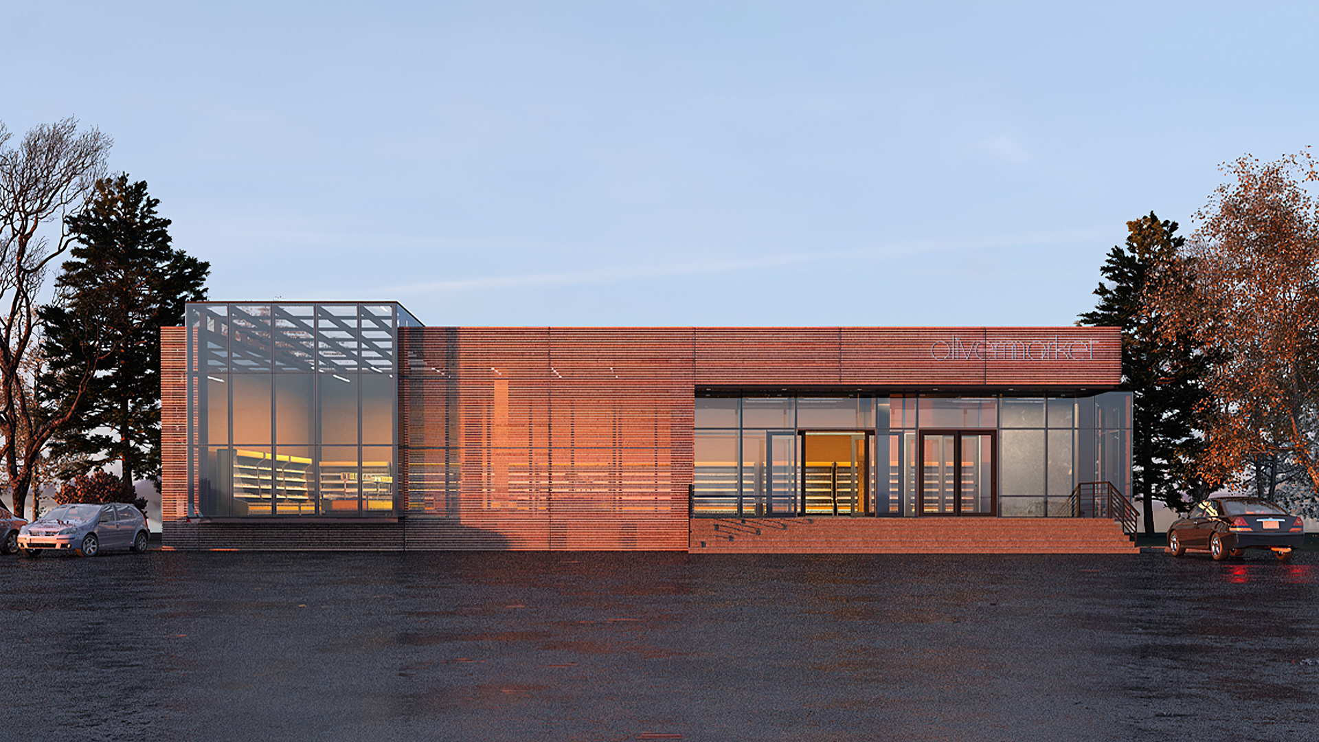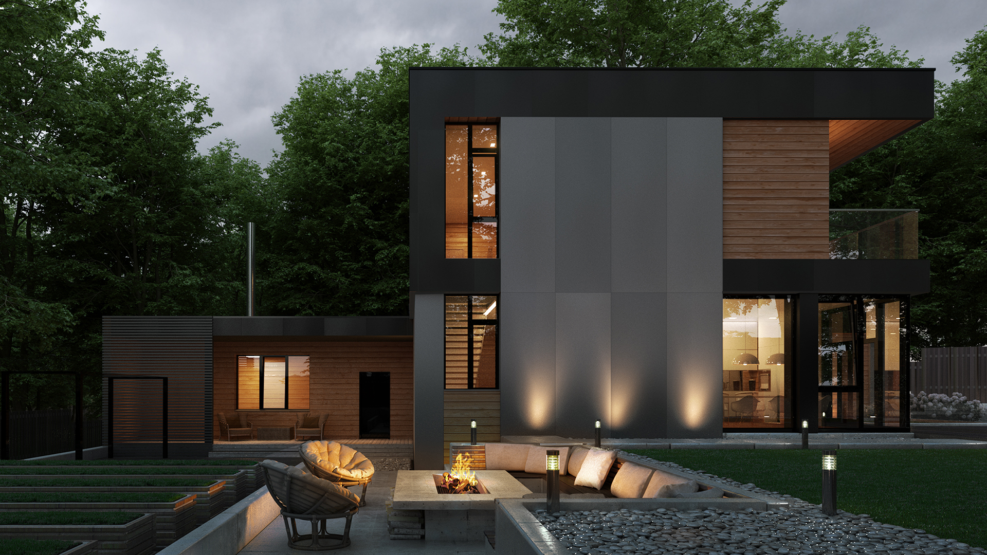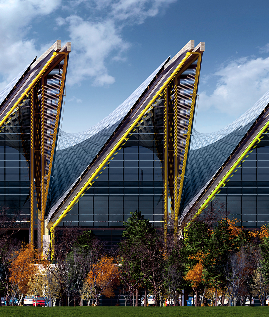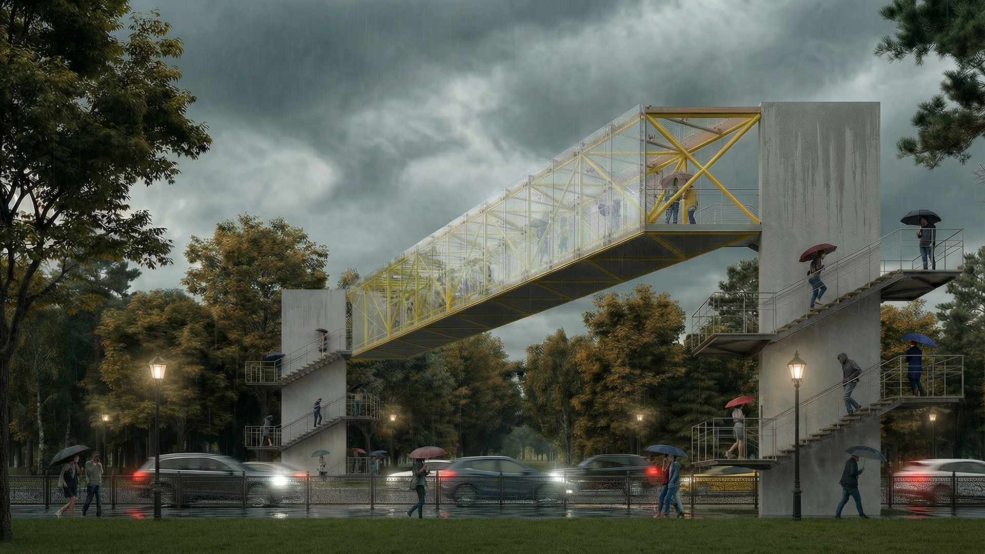 Основной идеей, легшей в основу объемно-планировочного решения, стало наличие у каждой квартиры открытой террасы, что закономерно привело к каскадному смещению этажей, для выразительности силуэта фасад разделен по диагонали на два типа террасирования. Дополнительным вызовом стала необходимость поэтажной проработки планировок квартир с сохранением вертикальности инженерных коммуникаций, мокрых зон и лестнично-лифтовых узлов. архитектурная композиция представляет собой белый объем жилых этажей, парящий над объемом массивного стилобата-паркинга, который также в свою очередь оторван от земли. первый этаж — нежилой, вмещает парадное фойе, въезды в паркинг и коммерческие площади.