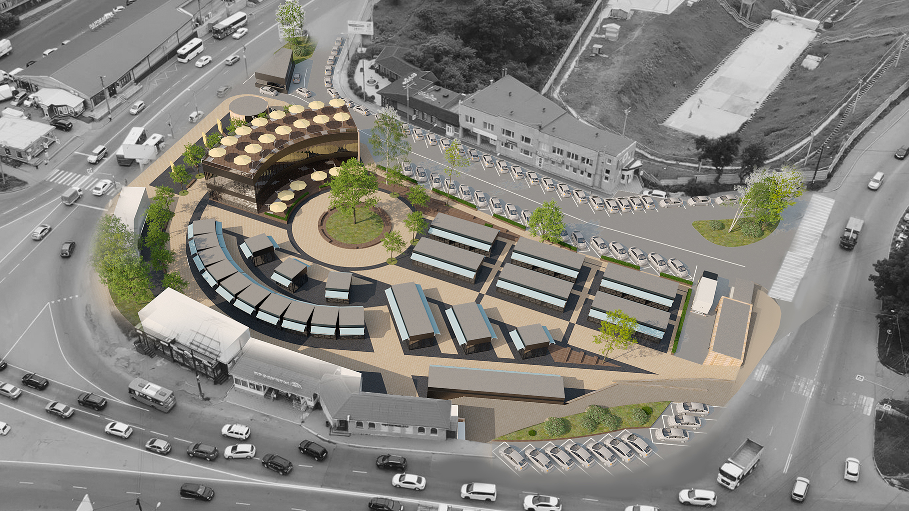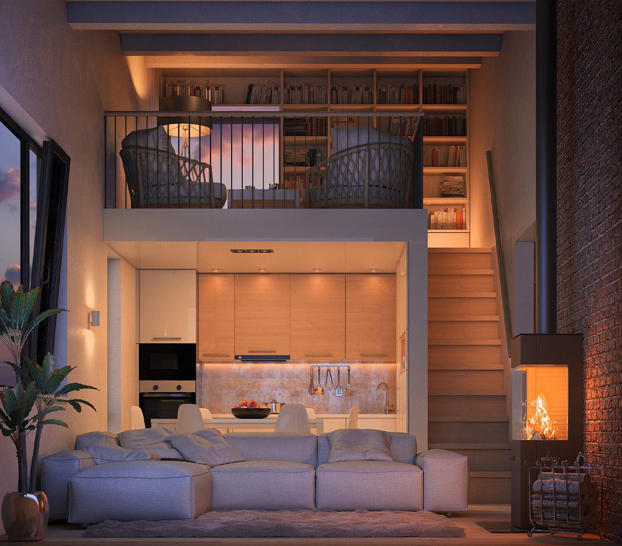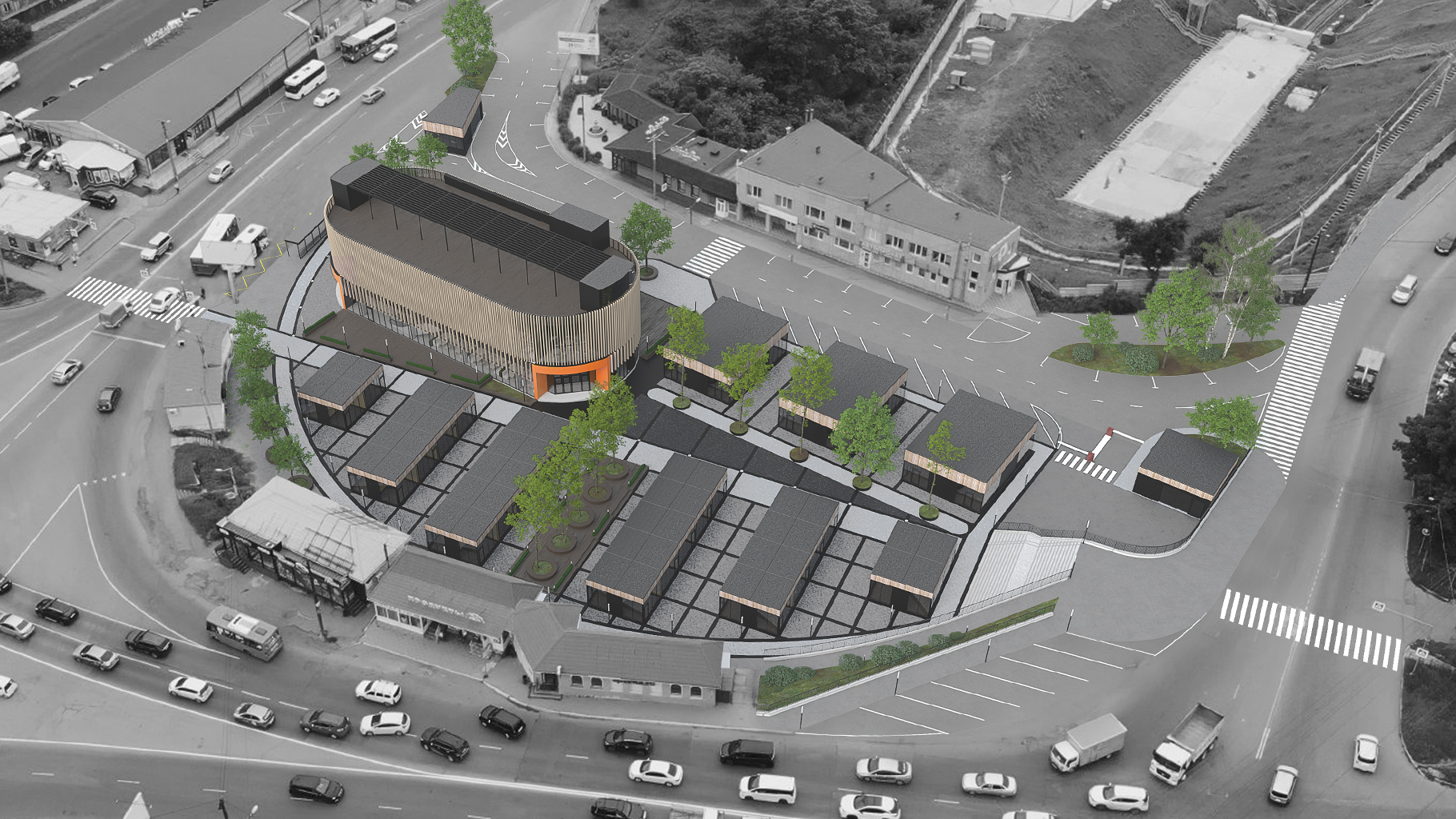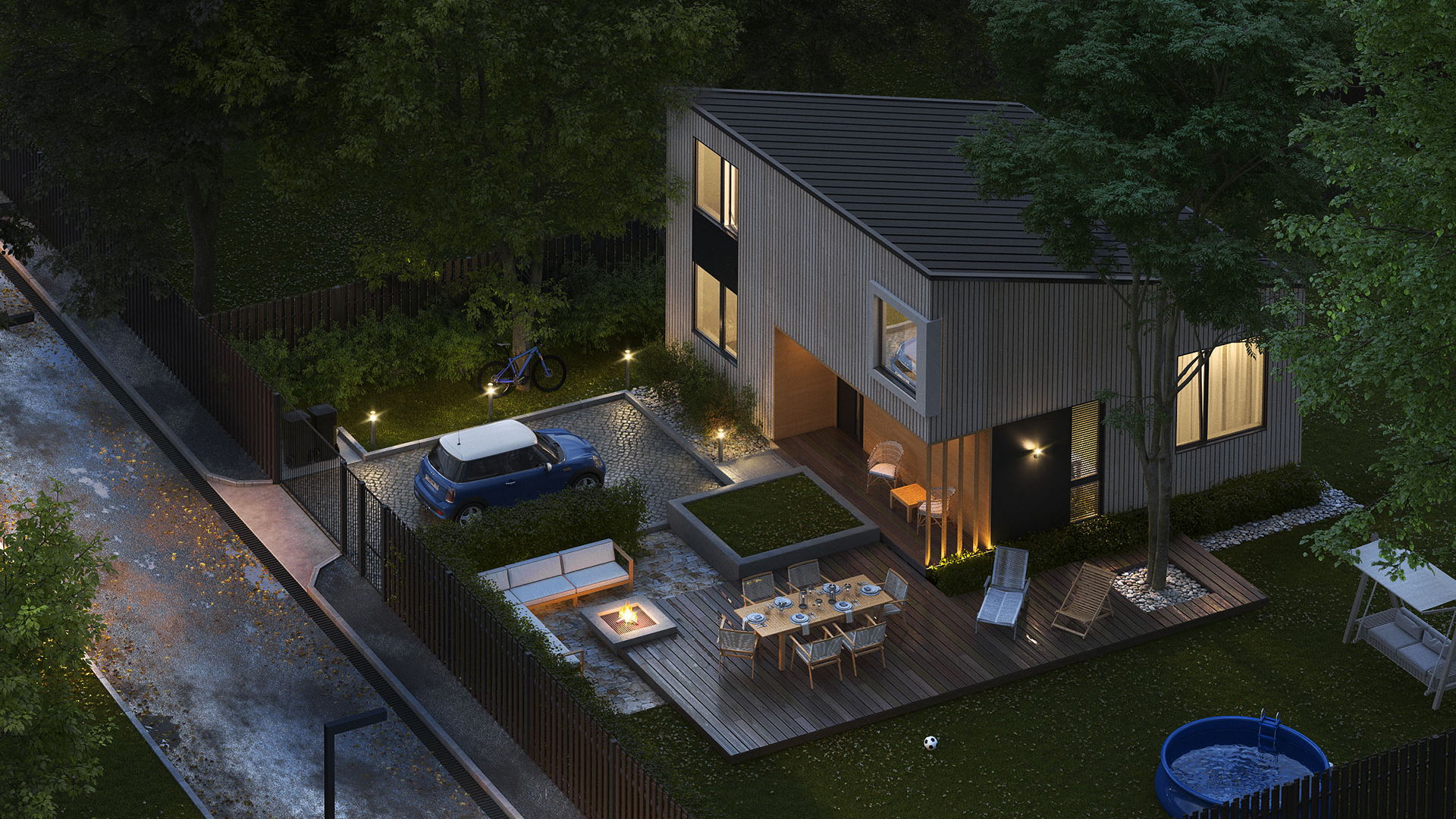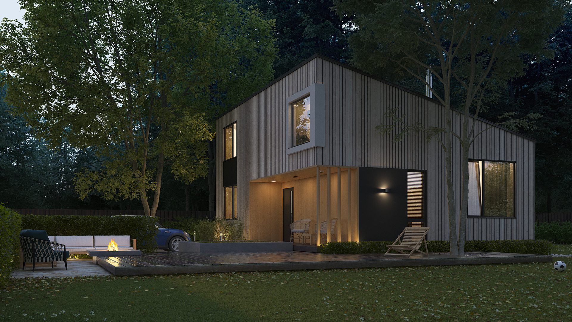 Основной идеей, легшей в основу объемно-планировочного решения, стало наличие у каждой квартиры открытой террасы, что закономерно привело к каскадному смещению этажей, для выразительности силуэта фасад разделен по диагонали на два типа террасирования. Дополнительным вызовом стала необходимость поэтажной проработки планировок квартир с сохранением вертикальности инженерных коммуникаций, мокрых зон и лестнично-лифтовых узлов. архитектурная композиция представляет собой белый объем жилых этажей, парящий над объемом массивного стилобата-паркинга, который также в свою очередь оторван от земли. первый этаж — нежилой, вмещает парадное фойе, въезды в паркинг и коммерческие площади.
